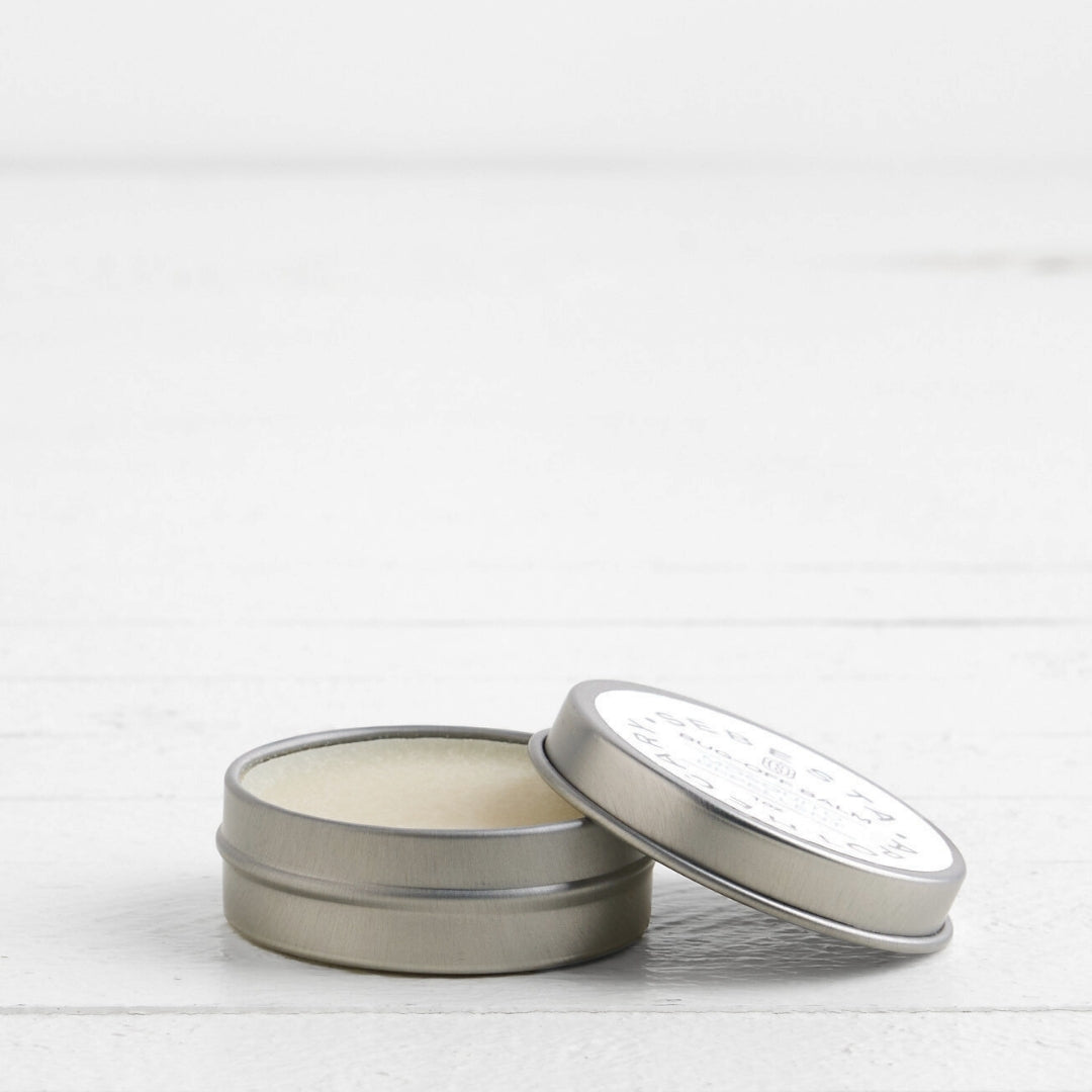 Coconut oil, Shea butter, Beeswax, Citronella, Peppermint, Lavender, Rosemary, Tea tree, Cedarwood, and Eucalyptus essential oils.